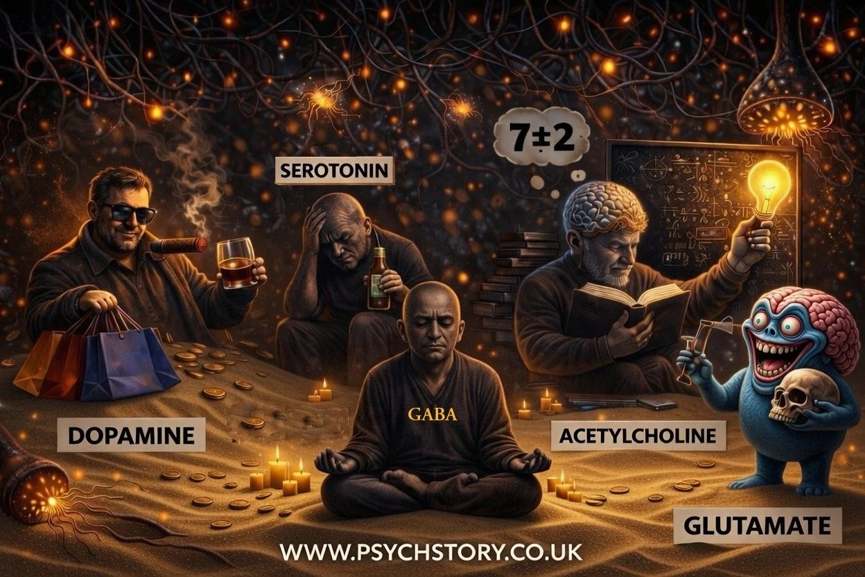 Each of these neurotransmitters has a significant impact on both physical and mental health, and imbalances can lead to various psychological and neurological disorders.