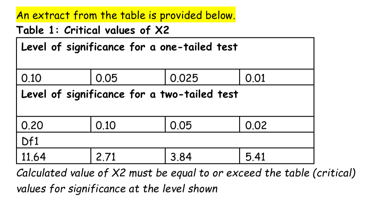 She analysed her data using a statistical test and calculated a value of X² = 2.27. She then looked at the relevant table to see whether this value was statistically significant