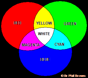 The primary colours of light are red, green and blue. These are called primary colours because all other light colours can be made from them.