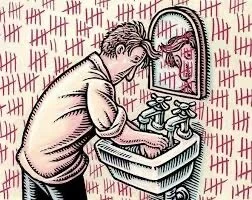 Reoccurring intrusive thoughts encourage acts they think will reduce anxiety, e.g. cleaning door handles and washing hands. May experience doubtful thoughts, such as the fear of overlooking something. Sufferers may realise their thoughts are irrational or inappropriate to share with others and struggle to control them consciously, causing further anxiety.