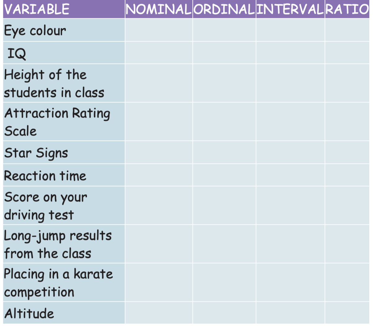 6. Experiment which takes place in the participants' environment. The experimenter does not manipulate the IV