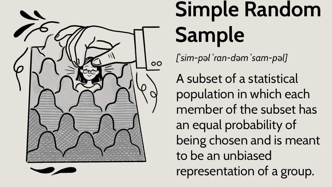 Probability sampling is a sampling method that involves randomly selecting a sample, or a part of the population that you want to research. It is also sometimes called random sampling. To qualify as being random, each research unit (e.g., person, business, or organisation in your population) must have an equal chance of being selected. This is usually done through a random selection process, like a drawing, to minimise the risk of selection bias.